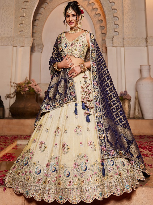 Cream Designer Embroidery Beads And Stone Work lehenga choli