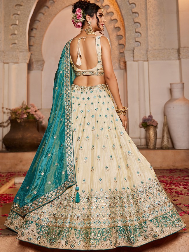 Cream Designer Embroidery Beads And Stone Work lehenga choli