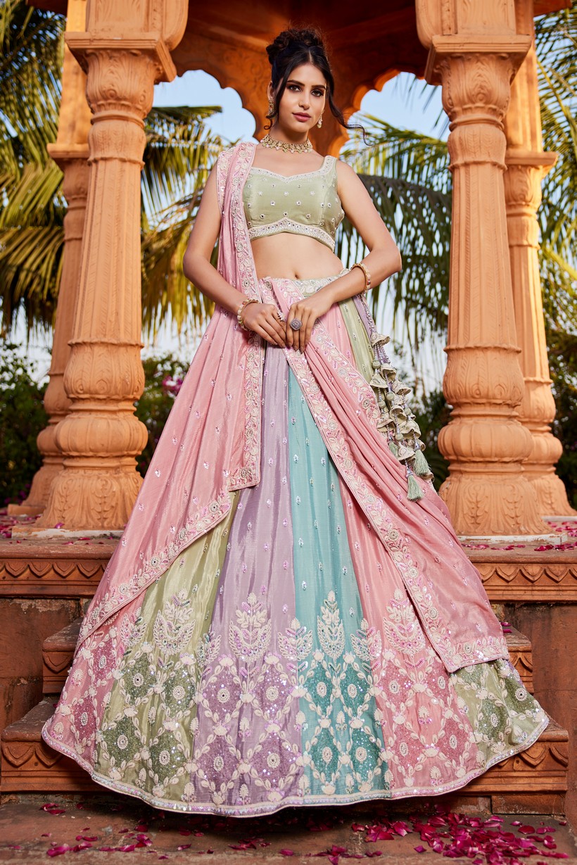 Pista and pink Designer Embroidery and Beads And Stone Work lehenga choli